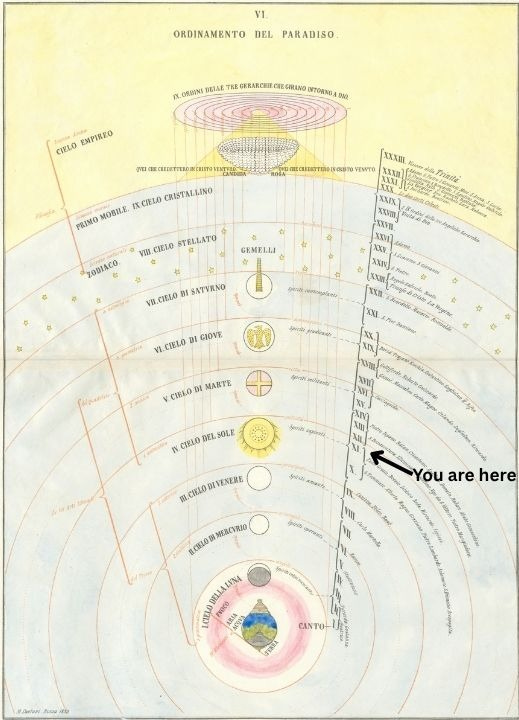 There were more; those who followed the priesthood were not immune to this downward pull, nor were rulers, thieves or statesmen, or those given over to bodily passions and sloth. But Dante, in the celestial sphere of the Sun, was of another mind than these.