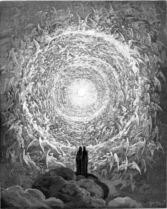 And I believe this insight connects very closely to Dante’s arrival in the Empyrean in Paradiso Canto XXX, and to his encounter with overwhelming light. When Dante and Beatrice enter the Empyrean, Dante is struck by an intense, blinding brightness. It is an encounter with something too vast to comprehend at once.