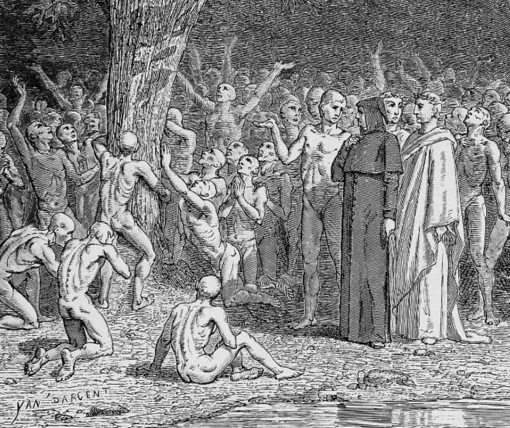 Dante described in aching detail the gaunt aspects of these shades, looking to accounts of both classical and biblical sources for the terrible suffering of those consigned to extreme hunger.