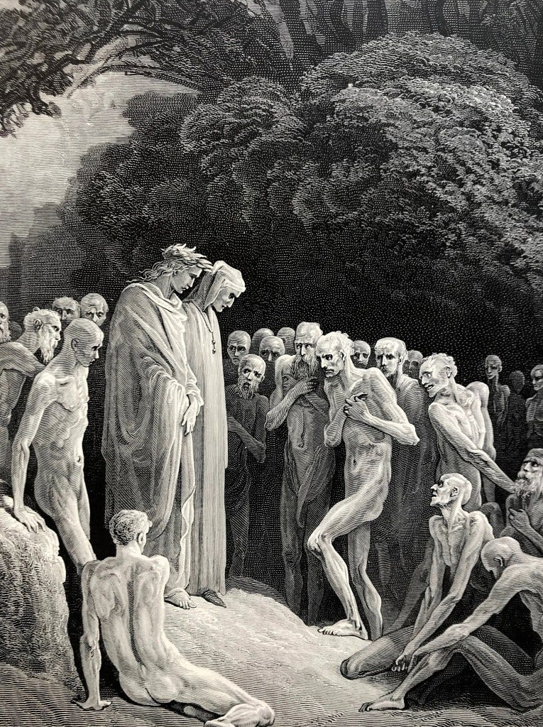 Dante had been there when his friend Forese died, and seeing him so gaunt and wasted brought fresh grief to him. He asked the nature of that terrace, and Forese told him:
