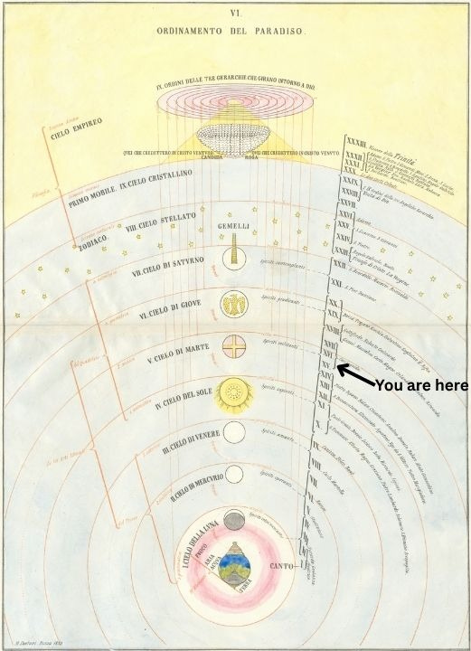 Welcome to Dante Book Club, where you and I descend into Hell and Purgatory to be able to ascend to Paradise. Our guide in Paradise is Beatrice, and in this fifteenth Canto of the Paradiso, we meet Dante’s ancestor Cacciaguida. You can find the main page of the read-along right here, reading schedule here, and the list of chat threads here.