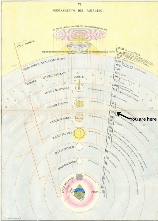 Cacciaguida rejoined these warriors back in the cross of lights after this roll call. His speech and teachings to Dante were complete. Dante turned to Beatrice.