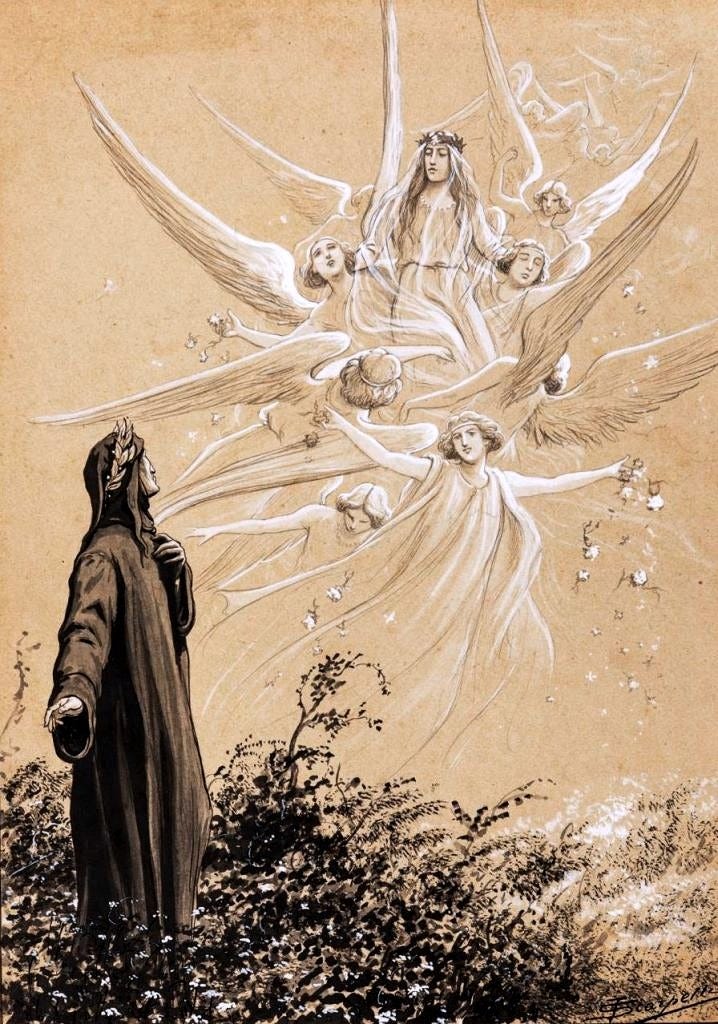 Dante had not seen Beatrice for ten years, since her death on earth, yet even through her veil, Dante felt the power and mystery of her love, which had so captivated and transformed him in his youth.