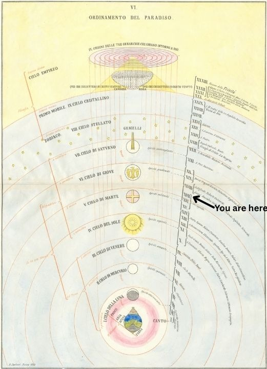 Welcome to Dante Book Club, where you and I descend into Hell and Purgatory to be able to ascend to Paradise. Our guide in Paradise is Beatrice, and in this seventeenth Canto, we hear a prophecy about Dante’s exile. You can find the main page of the read-along right here, reading schedule here, and the list of chat threads here.
