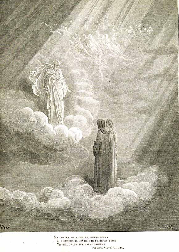 After the close of Cacciaguida’s speech on the downfall of the noble houses of Florence in the fifth celestial sphere of Mars, Dante sought assurance from both his ancestor and of Beatrice about his own fate, which stemmed from the creation of the Florentine factions that Cacciaguida had just spent so much time detailing.
